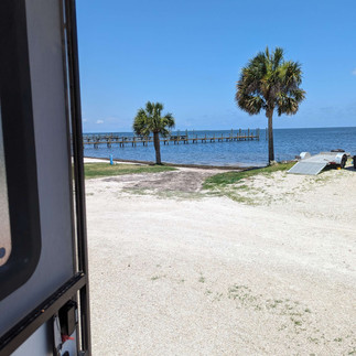 We had a beautiful drive today and are nestled in by the beach in Carrabelle FL. It's a small park right on the water. The view is amazing.