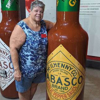 We got to our campground for the night about 11:30 am We set up and we're on the road to Avery Island, Home of Tabasco. What a neat story and great afternoon. We toured several museums, the green house, barrel making workshop, the mixing room and the bottling facility. We then ate lunch at the restaurant there. We tasted all 9 flavors and one in development. I had a great crawfish PoBoy and Dave had Gumbo. It was good and the cafe had nice cold AC. It was a warm humid day. We hadl to walk outside from building to building.