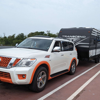 We had the pleasure to ride the ferry, just part of the road. It was free. We drove right on with the trailer. While we were waiting we watched huge pelicans sit and watch for food. We saw 4 dolphins playing in the water. Dave said they were fishing not playing 🌞.